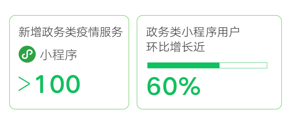 有力支撑海关、社保、税务、发票等场景的无接触政务,政务类小程序用户环比增长近60%。
