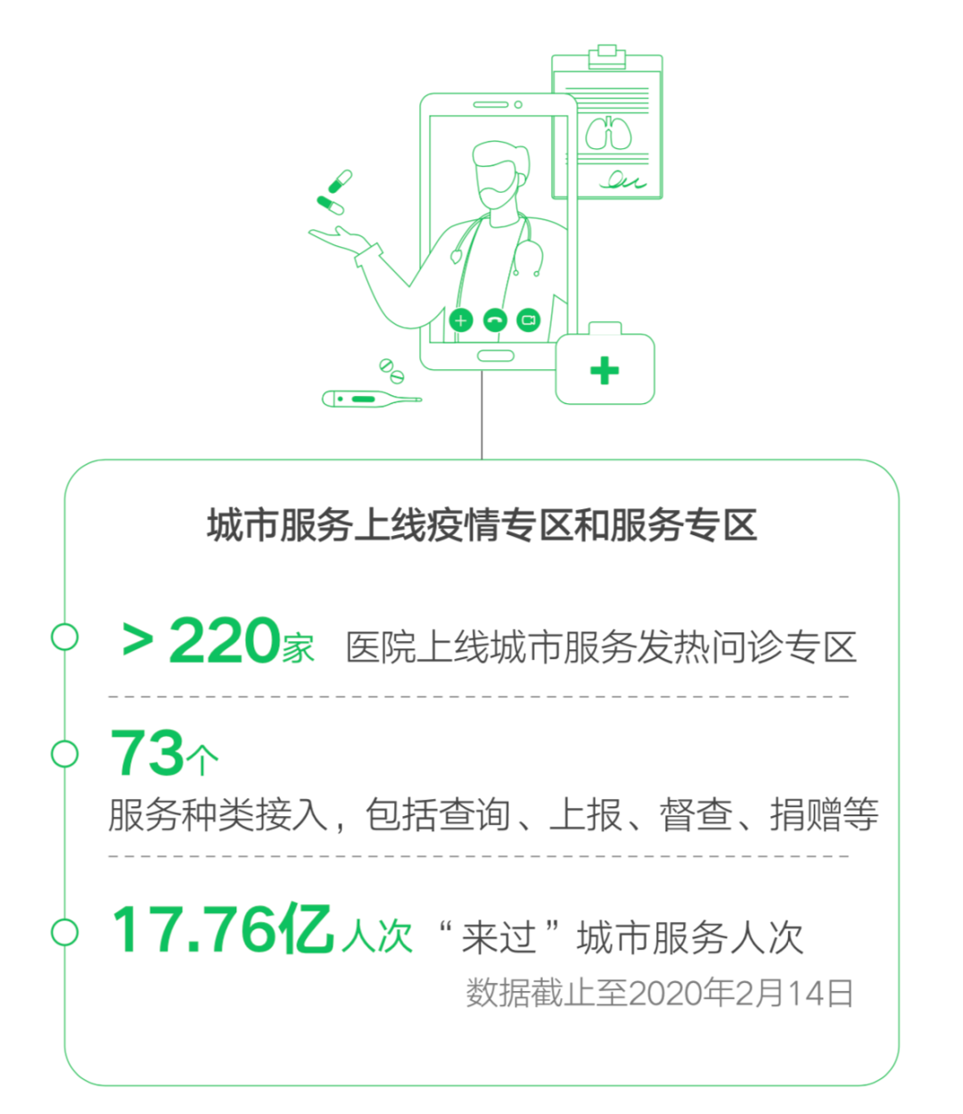 医疗类疫情服务小程序新增近800个,医疗小程序用户环比增长347%,超千所医院在企业微信接受了13万起在线问诊。
