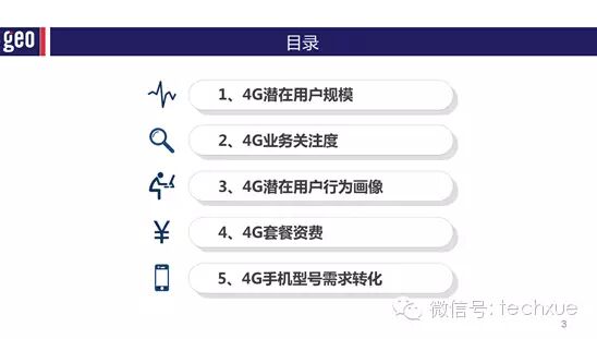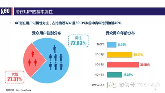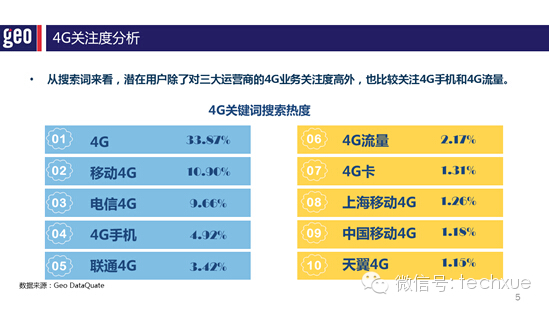 备注:希望了解4G的人群按照洞察周期内搜索过4G关键词的人群统计;可能办理4G套餐的人群按照搜索过4G人群以及浏览过三大运营商4G业务相关页面的人群统计;考虑购买4G手机的人群按照在电商搜索、浏览及购买过4G手机的人群统计;4G潜在用户为上述三种人群去重总和。
