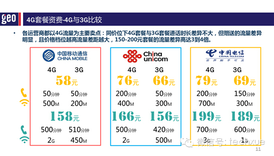 三家运营商4G套餐性价比远高于3G套餐,是流量经营理念的集中体现,这也很大程度打消了用户跨入4G时代的资费顾虑。