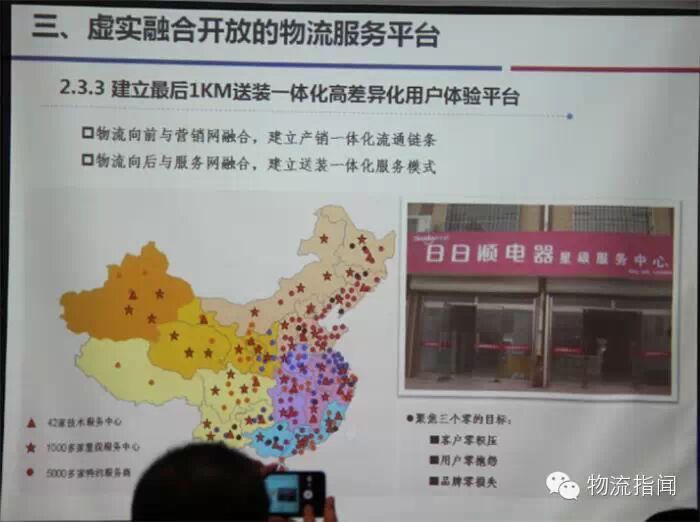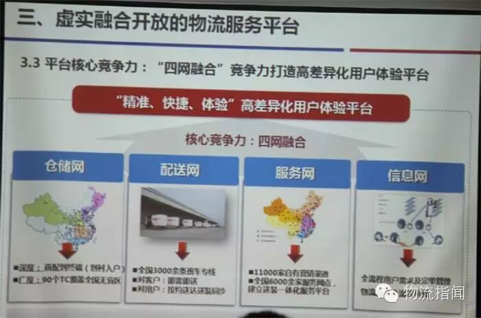 全零售时代下大家电电商物流平台建设: 1、从企业物流—物流企业—平台物流的转型 2、电商物流四网融合:仓储网、配送网、服务网、信息网 3、全球三级TC网络布局,实现“鼠标一点 送货到家 “服务 4、最后1KM送装一体化高差异化用户体验平台。