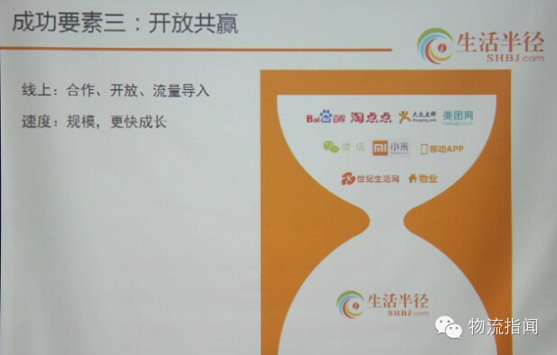 互联网全竞争态势下生活半径的核心成功要素: 1、脚踏实地的做事接地务实的服务 2、IT领先—订单、调度、用户客户端以及实时服务监管 3、开发共赢的心态:合作、开发、速度、成长 4、本地生活配送难点:规模化难和地域拓展难。