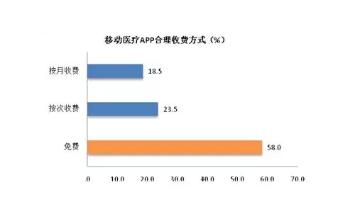 数据显示,58%受访者认为移动医疗APP合理收费方式为免费,23.5%认为合理收费方式为按次收费,18.5%认为合理收费方式为按月收费。大部分消费者不愿意放弃免费的午餐,移动医疗APP的盈利点到底在哪儿?解决这个问题迫在眉睫。