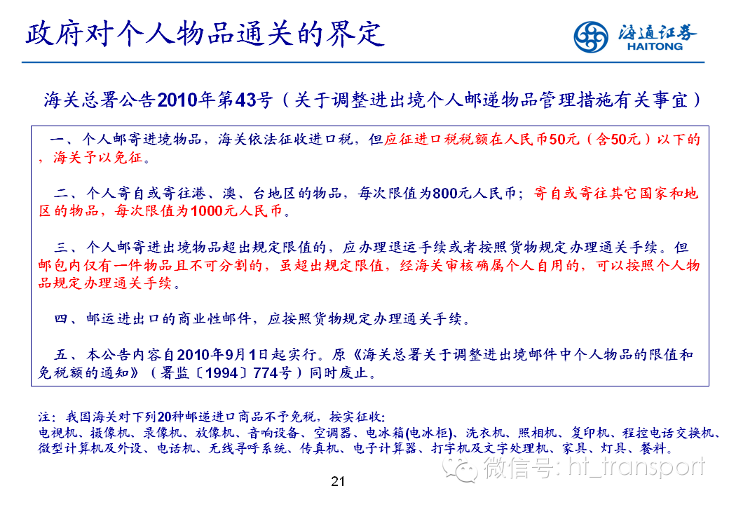 天猫国际、亚马逊、洋码头这些耳熟能详的的名字已预示着跨境电商的爆发点已经来临,商品、平台、物流是支撑电商发展的三架马车,而本文我们主要是从政策监管的维度来解读跨境电商和配套物流的发展趋势,锁定交运相关的三只标的:外运发展、华贸物流和上港集团。