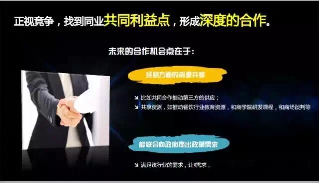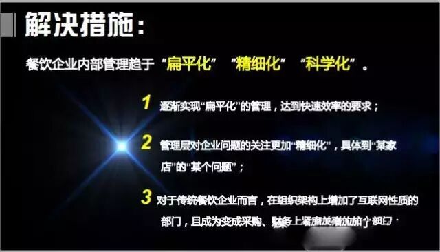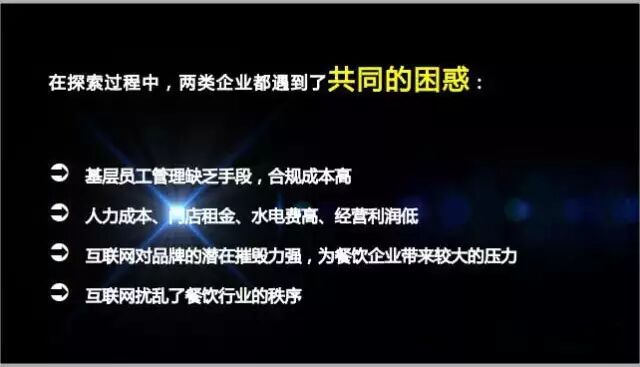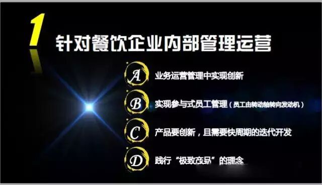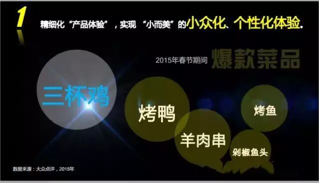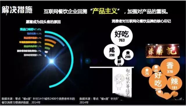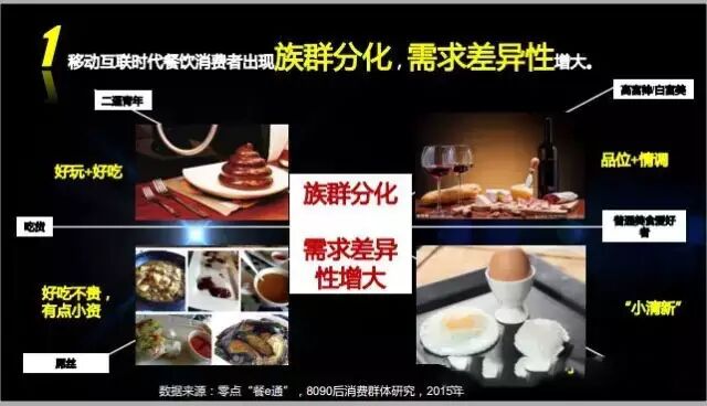 餐饮企业如何借着互联网的翅膀实现产业升级?报告指出,一方面要重视年轻一代消费群体的兴起,移动互联时代餐饮消费者出现族群分化,需求差异性增大。新一代群体重视娱乐性、互动性,对于创新迭代、深度体验的要求更高。另一方面,正如李克强总理在政府工作报告中提出的“互联网+”概念,需要重视互联网思维与传统餐饮行业运营经验的紧密结合。针对餐饮企业内部管理运营而言,互联网思维化的核心关键点是要加强业务运营管理中的创新、加速产品创新的迭代开发、以及改进销售终端的流量管理机制、并在营销传播层面,努力挖掘餐饮与文化、社交、情感层面的衔接点,并显性化、高感化地把湿营销做到极致,把免费去廉价化。就餐饮企业的外部运营而言,要重视与供应商构建多方共赢的平台生态圈,积极寻找合作中的低效点,打破利益分配格局,提升运营效率与组织效率。