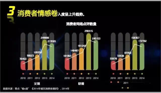 (电子商务研究中心讯) 互联网时代每个行业的企业都不可避免的受到影响,餐饮业也成为互联网思维推动的热点。以“根”为主题的第14届中国餐饮业连锁发展战略研讨会3月31日在杭州顺利召开,吸引了全国餐饮连锁行业佼佼者,达500余人。会上中国连锁经营协会和零点研究咨询集团联合发布了《互联网思维对餐饮业的影响》主题报告。报告援引多方互联网数据,结合企业实践案例,以新视角对现阶段餐饮业发展现状和趋势进行深度分析。