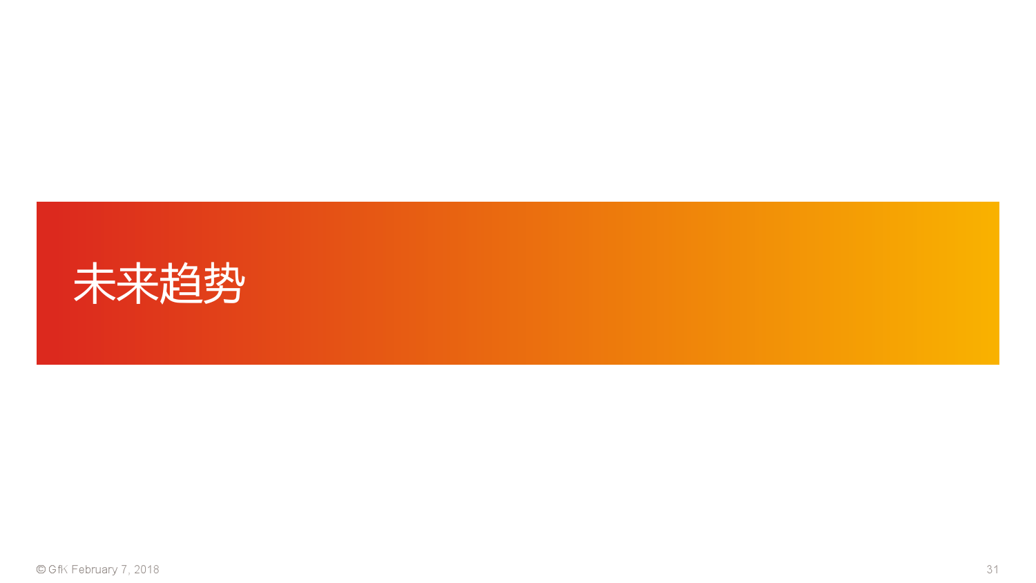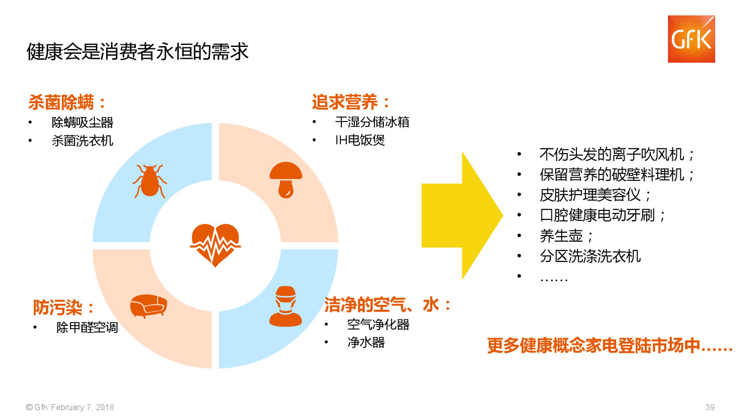 对于大家电产品,包括冰洗空、厨房电器及彩电在内的大家电市场2017年零售额达到1759亿元。在消费者追求品质生活的动力下,彩电产品大尺寸及曲面产品增长迅猛。以洗衣机为例,10公斤以上滚筒洗衣机在线零售量份额从2.1%增长到11.2%.伴随着人们环保节能意识的提升,在线选购家电时也更看重节能环保的产品,GfK数据显示,在线变频空调零售额同比增长100%,远高于整体变频26%的增速。未来节能环保和关注健康类产品仍然是消费发展的重要趋势之一。