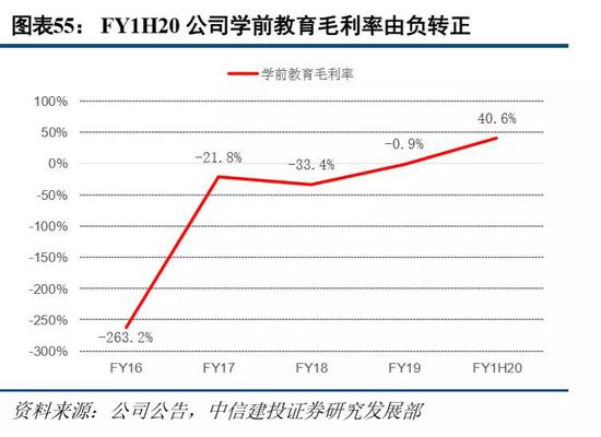 FY19公司学前教育实现收入3340万元,同比增长205.8%,收入占比3.6%;毛利率-0.9%。学前教育付费人次(含入门课程)31.4万人,同比下降47.4%;付费学生人均开支203元,同比增长361.4%。FY1H20学前教育收入达到2151万元,同比增长72.8%。公司通过将课程范围延伸至学前教育阶段,实现在线教育前瞻布局,为培育客户付费意识与K12培训课程引流提供帮助。