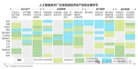 人工智能技术正与人类经济生产活动的主要环节达成紧密结合,提供生产办公效率提升、运营管理优化、服务体验增强等效果实现。 而随着大模型、生成式AI技术的到来,其强大的数据处理、学习泛化与内容生成能力,高质效加速了各行各业人工智能技术的赋能 进程,为AI可赋能的场景领域、扮演角色提供更多创新性与可能性。