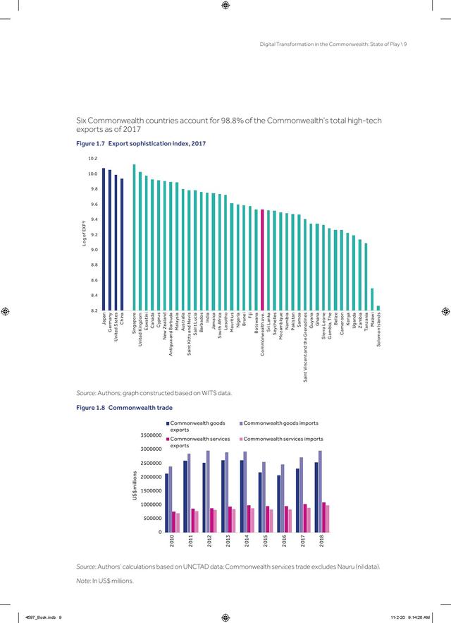 有6个成员国(英国、加拿大、澳大利亚、印度、新加坡和马来西亚)占英联邦在线销售总额的85%,2015年价值3540亿美元。这六个国家占英联邦高科技出口总额的98.8%。