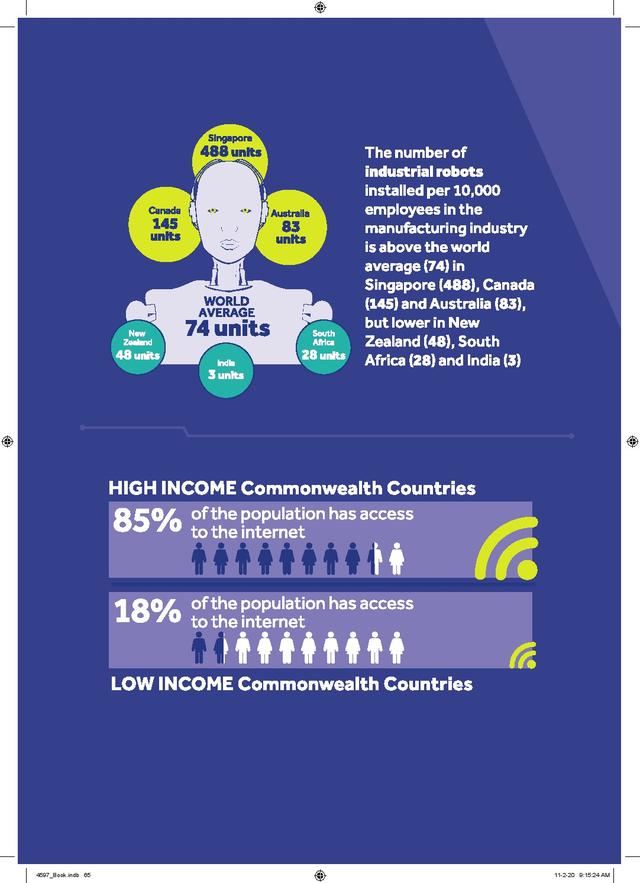 低收入英联邦国家中只有18%的人可以上网,而高收入国家中这一比例为85%。