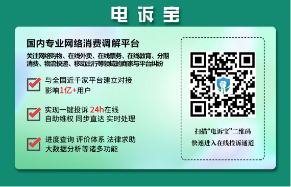 国内知名网络消费纠纷调解平台“电诉宝”(315.100EC.CN)运行10余年来,与全国近千家网络消费平台建立对接,影响1亿+网络消费用户,新系统实现一键投诉、24h在线、自助维权、同步直达、实时处理、进度查询、评价体系、法律求助、数据分析等诸多功能。目前,平台“绿色通道”服务向广大网络消费平台开放,平台可自主申请入驻,实时受理、反馈和查询用户满意度评价。为了更好地营造公开、透明、健康的网络消费投诉环境,“电诉宝”公开版已正式上线,新增用户投诉实时受理动态、月度平台投诉量TOP10、热点投诉地区、投诉榜(依据投诉量排行)等模块,让投诉过程透明化,一手掌握信息动态。